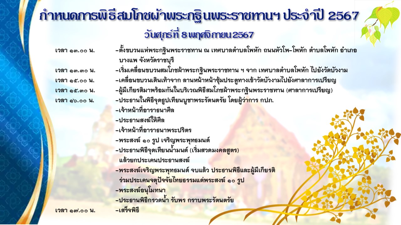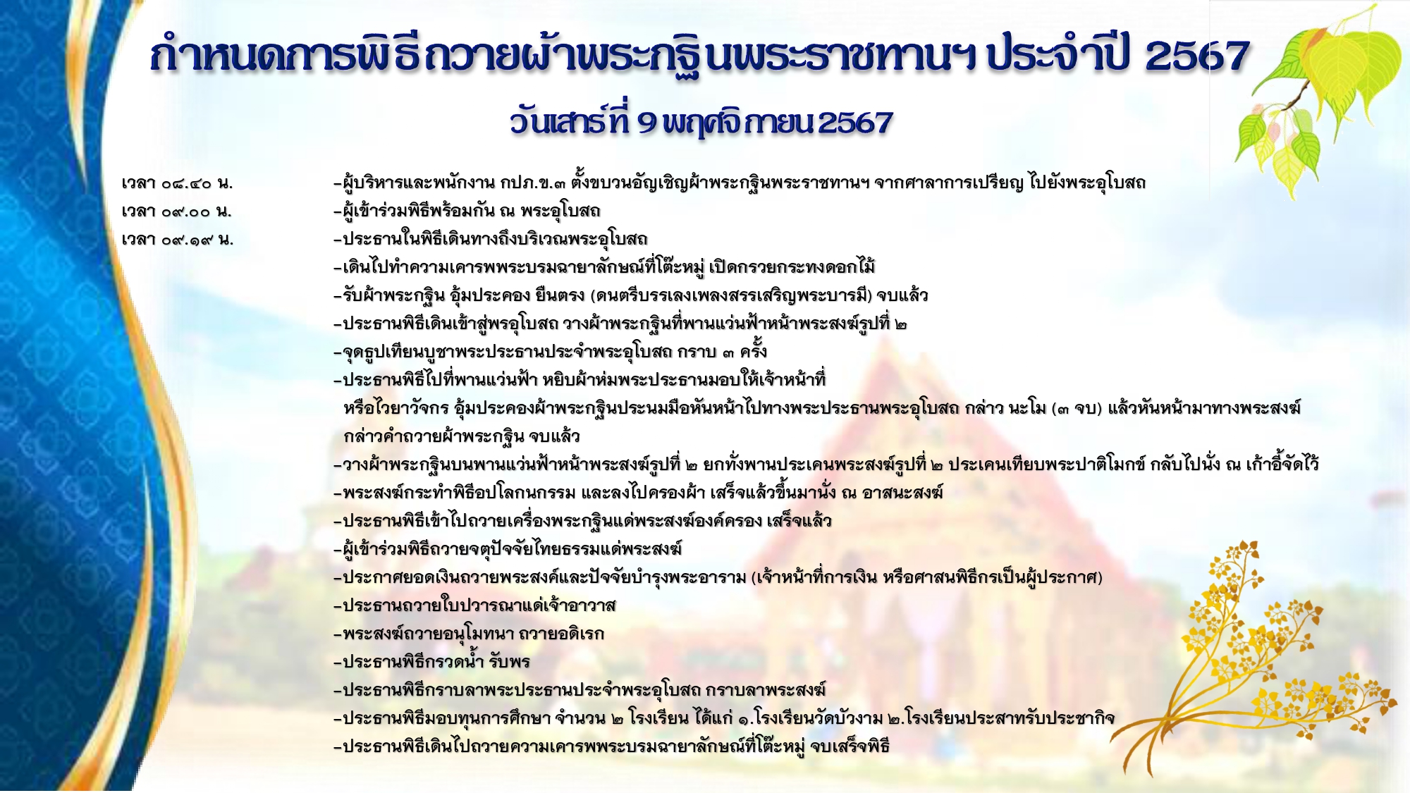 กำหนดการพิธีถวายผ้าพระกฐินพระราชทาน